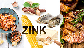 Zink findet man am häufigsten in Austern. Es ist ebenso enthalten in Fleisch, Fisch, Meeresfrüchten, Gemüse und Hülsenfrüchten, Vollkorn, Nüssen, Weizenkeim, Eigelb.